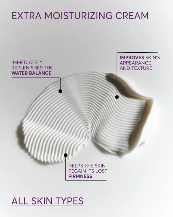 Η Extra Moisturizing Cream χαρακτηρίζεται από πλούσια υφή, απορροφάται εύκολα και αφήνει ευχάριστη αίσθηση υγρασίας με ματ αποτέλεσμα.