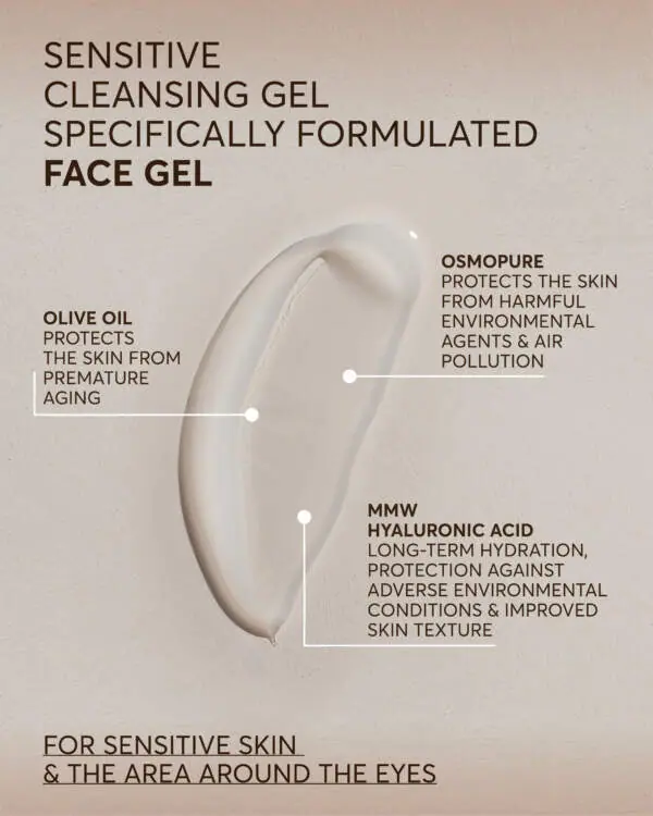 Καθαριστικό gel προσώπου ειδικό για ευαίσθητα δέρματα και για την περιοχή των ματιών.